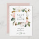 This elegant magnolia white save the date announcement postcard is perfect for a modern classy wedding. The soft floral design features watercolor blush pink peonies, stunning white magnolia flowers and cotton with gold and green leaves in a luxurious arrangement.