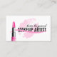 © 2010 Socialite Designs. Lipstick, lipstick kiss and a swish make a fun makeup artist business card. A perfect business card for a makeup artist, beauty salon, cosmetics, cosmetologist or beautician. Need HELP with customisation?