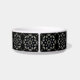 This is a heavy, durable bowl decorated with Tibbies of many colors, the perfect size for hungry/thirsty Tibs. The design is interesting and printing clear.