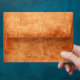 Elegant maple leaves orange fall wedding envelope that features elegant maple leaves in orange, white and brown colours and swirls on burnt orange grunge stained background on the inside. This elegant modern wedding template design is part of a wedding collection or set and is totally customisable. It is perfect for a fall or autumn wedding.