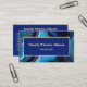 This modern and elegant business card features a dark blue, navy, royal blue, turquoise, gold glitter, and white swirl in the background, with your name in silvery gold against a colour block of deep blue. This standout card is dramatic but simple, with an understated but attention-getting elegance. It has a luxury look yet makes a dramatic and memorable statement. This business card template is easy to customise with your name, title, phone, website, address, and other details. Just edit, delete, or add to the lines, as long as the text fits into the borders. You can also choose to customise the design further if you wish.