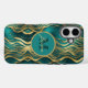 Elegant Marble Beige Turquoise Blue Teal Monogram Case-Mate iPhone Case