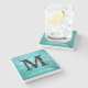 Elegant Marble Black and White Monogram Wedding Stone Coaster