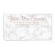 Modern and elegant business shipping labels featuring your name in a chic faux rose gold script font and two lines of text for your return address, over a grey marble background. A thin line divides the space below where you can handwrite your customer's address. These stylish shipping labels are a great way to add a professional touch to your packages.