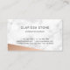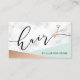 Modern and elegant business cards for hairstylists with faux rose gold scissors, mint & rose gold colour block, white marble texture and elegant calligraphy font.