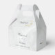 A stylish marble design wedding favour box with elegant script. Perfect for filling with treats or small gifts to thank your guests. Customisable with names, date, and location for a personal touch.