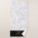 Elegant Marble White Black Gold Monogram Initial Bathroom Bath Towel Set