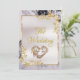 This elegant wedding announcement features a white satin center on a black and white marble background, framed with gold roses and leaves, embellished with a gold scroll heart. Designed to coordinate with the "Elegant Marble, Gold Leaves Frame & Scroll Heart" Wedding Collection. To change details, click «Personalize». To move the text or change the text size, font, or color click «Click to customize further»