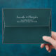These beautiful marbled teal wedding envelopes are perfect for making your invitations all the more special. They feature a romantic design on the inside flap with a single long stemmed teal, turquoise, or dark aqua coloured rose reflecting in a pool of water. The back flap has your return address in lacy script calligraphy. Sophisticated and chic, these envelopes will add a touch of class to any mailing.