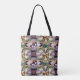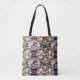 This is a fun, elegant Mardi Gras inspired tote bag featuring masks, feathers and decorative objects on an ink oil background. The colours used in the design are the traditional Mardi Gras colours, purple, green and gold.