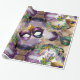 This is a fun elegant wrapping paper featuring Mardi Gras mask, feathers and decorative objects on an ink oil background. The colours used in the design are the traditional Mardi Gras colours, purple, green and gold. This wrapping paper is perfect to wrap gifts for a variety of occasions.