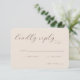 This elegant wedding RSVP card features a soft, blush pink background with sophisticated cursive typography that exudes timeless charm. The minimalist design focuses on clean lines and ample space for personalization, making it perfect for couples who prefer an understated yet refined aesthetic. With its simple color palette and graceful script, this card conveys a warm and inviting tone, ideal for setting the mood for your special day. It’s designed to seamlessly fit into any wedding theme while allowing you to add your unique details effortlessly.