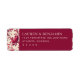 This elegant return address label features a sophisticated maroon background paired with an intricate floral pattern on the left side, showcasing lush pink roses and red flowers. The design combines modern digital illustration techniques with classic botanical elements, creating a timeless aesthetic. Clean serif typography is used for the customisable text, ensuring clarity and refinement. Perfect for formal invitations or significant announcements, this label exudes elegance and formality, making it ideal for special occasions.
