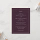 This elegant wedding invitation features a sophisticated maroon background with crisp white text, creating a classic and timeless look. The design showcases a symmetrical layout with clean lines and precise typography, utilising serif fonts that enhance the formal tone. Customisable elements allow for personalisation of names, dates, and locations, making it perfect for couples seeking a traditional yet refined aesthetic. Ideal for formal weddings, this invitation conveys an air of elegance and tradition, ensuring all details are communicated clearly and beautifully.
