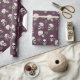 Hand-drawn in black ink, this wrapping paper features a beatufiul pattern of skulls, roses and spiderwebs in cream and blush tones, all against an elegant maroon background.