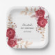 Elegant birthday paper plate, featuring a beautiful maroon rose floral design with greenery accents. Each text is customisable for your needs.