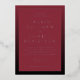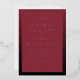 This elegant wedding invitation features a classic rectangular layout with a rich maroon background and crisp white serif typography, creating a sophisticated and formal aesthetic. The design is framed by a black border, enhancing the luxurious feel while maintaining simplicity and focus on the text. Customisable elements allow for personalisation of names, dates, and locations, making it perfect for couples seeking a timeless and refined look for their special day. The overall mood is one of celebration and tradition, ideal for an unforgettable wedding event.
