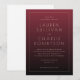 This elegant wedding invitation features a minimalist design with a maroon gradient background that transitions from dark to light, creating a sophisticated and formal atmosphere. The layout is clean and balanced, with centrally aligned text in crisp white serif fonts that emphasize clarity and elegance. Customizable placeholders allow for personalization of names, dates, and locations, making it perfect for couples seeking a classic yet modern look. The overall mood is one of refined simplicity, ideal for an upscale wedding celebration.