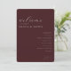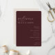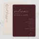 This wedding program features a sophisticated, minimalist design with a deep maroon background and crisp white text. The layout is elegant, combining cursive and serif fonts to create an inviting and formal atmosphere. It includes customizable sections for the ceremony schedule, ensuring clarity and readability. Perfect for couples seeking a classic yet modern look, this program sets the tone for a memorable celebration.