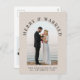 Elegant light taupe wedding announcement Christmas holiday postcard featuring your photo in an arch frame, "Merry & Married" in classic serif typography, and your names and the year in simple modern typography. On the back, add an additional photo, your personalised seasonal message to family and friends, and your first names in a signature-like script.