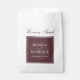 In classic minimalist style, this favour bag is a nice choice for fall or winter weddings, engagement parties, bridal showers and other special events. It has a classic elegant square in rich marsala burgundy red with custom text that you can personalise with the bride and groom's names and wedding date, or other desired text.