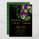 The dramatic black background highlights the luxurious mask details, while the coordinating green back background with black fleur de lis adds a bold, celebratory finish. Perfect for masquerade-themed bridal showers, elegant evening showers, or upscale pre-wedding celebrations, this invitation is fully customizable with your event details.