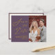 Elegant Mauve Modern Script Photo Minimalist Wedding Save The Date Announcement Postcard. Let your family, friends and colleagues know that you have set a date for your wedding celebration with this elegant, stylish and modern wedding save the date invitation card. All the texts are pre-arranged for you to personalise easily and quickly with your own details.