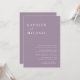 Mauve Purple Modern Typography QR Code All In One Minimalist Wedding Invitation Card. Celebrate your special day with this elegant and beautiful wedding invitation card to beautify your special occasion. All the texts are pre-arranged for you to personalise easily and quickly with your own details. If you need further customisation or matching items, please email alldaybreakfastzazzle@gmail.com – we would love to help.