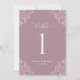 Elegant Vintage Mauve Wedding Table Numbers: Use these vintage, classic table numbers at your wedding reception or event. This design features the word "Table" in an elegant calligraphy with an ornate vintage corners design for a luxe look. This mauve is a muted purple pink or dusty rose colour. See all of my matching wedding products for this collection below.