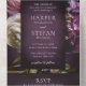 This design is part of a dark and moody maximalist floral wedding invitation suite, featuring lush, oversized botanical blooms with a deep jewel tone purple palette. The luxurious fine art floral aspect is paired with elegant typography for a timeless and romantic aesthetic. Ideal for fall, winter, or evening weddings, this design suits couples planning a sophisticated celebration with a touch of drama.