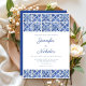Elegant Mediterranean Blue Tiles Wedding Invitation.