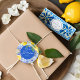 This watercolor lemon she found her main squeeze theme Mediterranean bridal shower stickers features Mediterranean tiles pattern in blue and white colour.The dusty blue,yellow,navy blue and white colour is a perfect colour palette for classy and formal bridal shower party decor.