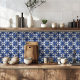 Elegant ceramic wall tile featuring a timeless Mediterranean navy blue and white geometric floral pattern. Inspired by Portuguese azulejo and Italian coastal design, this sophisticated tile is perfect for a decorative backsplash or stylish kitchen wall, adding refined coastal charm to spring and summer home décor.