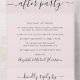Modern light pink elopement or private wedding announcement and reception all in one invitation. Customise your elopement/wedding announcement, reception invitation and menu choices. "Happily Ever After Party" is written in simple typography and a stylish script with swashes. A tear away RSVP postcard provides a convenient and eco-friendly and envelope-free response from your guests.