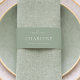 Designed in soft sage green with warm ivory typography, this minimalist belly band is perfect for wrapping wedding menus, invitations, programs, or napkins.