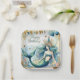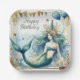 Elegant Mermaid Birthday Blue Gold Floral Paper Plate