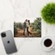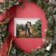 Modern holiday photo card featuring your horizontal photo with "Merry Christmas" displayed in a rose gold foil script overlay. Personalise the front of the foil Christmas photo card with your family name and the year. The card reverses to display a pale dusty rose and white snow pattern.