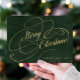Elegant Merry Christmas gold dark green non-photo Holiday Card