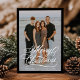 Introducing the Elegant Merry Christmas Script holiday photo card, a beautifully simple and modern way to send holiday cheer. Featuring your vertical photo framed in black, the card displays "Merry Christmas" in elegant white calligraphy overlaying the image. Customise with your name and the year in white lettering. The back showcases a horizontal photo with space for a personal message below. Perfect for sharing your favourite holiday moments in a stylish, sophisticated design!