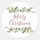 Elegant Merry Christmas Script Greenery Classic Round Sticker