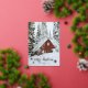 Photo gold foil script text "Merry Christmas" with foil snowflakes design. Back features a solid background colour. Placeholder template photo courtesy Unsplash.