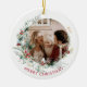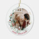 Elegant Merry Christmas watercolor wreath Christmas ceramic photo ornament. Watercolor artwork with your photo and text.