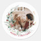 Elegant Merry Christmas wreath photo Classic Roun Round Sticker