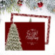 Elegant Merry Little Christmas Tree Plaid Dark Red Holiday Card