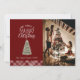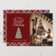 Elegant Merry Little Christmas Tree Plaid Dark Red Holiday Card