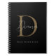 Elegant Midnight Black Mossy Gold Script Monogram Notebook