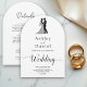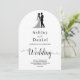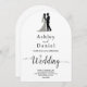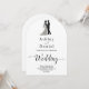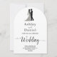 This elegant black-and-white arch wedding invitation is perfect for a modern wedding. The simple design features elegant black calligraphy and a bride and groom illustration on a clean white background. The invitation card includes the wedding details on the back instead of paying for a separate enclosure card.
