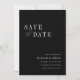 white script lettering black wedding save the date wedding card with qr code. The text and colours can be edited.