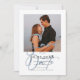 Minimal and stylish dusty blue colour theme Wedding Save the Date invitation card. Simple yet elegant, customise with your own photo, names and wedding date. This card features a gorgeous script font on the front of the card, together with a photo ready for you to replace with your own. A clean and modern design, perfect for informing your guests to save the date of your upcoming wedding day!