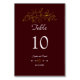 Elegant Minimal Gold Floral Deep Burgundy Wedding Table Number